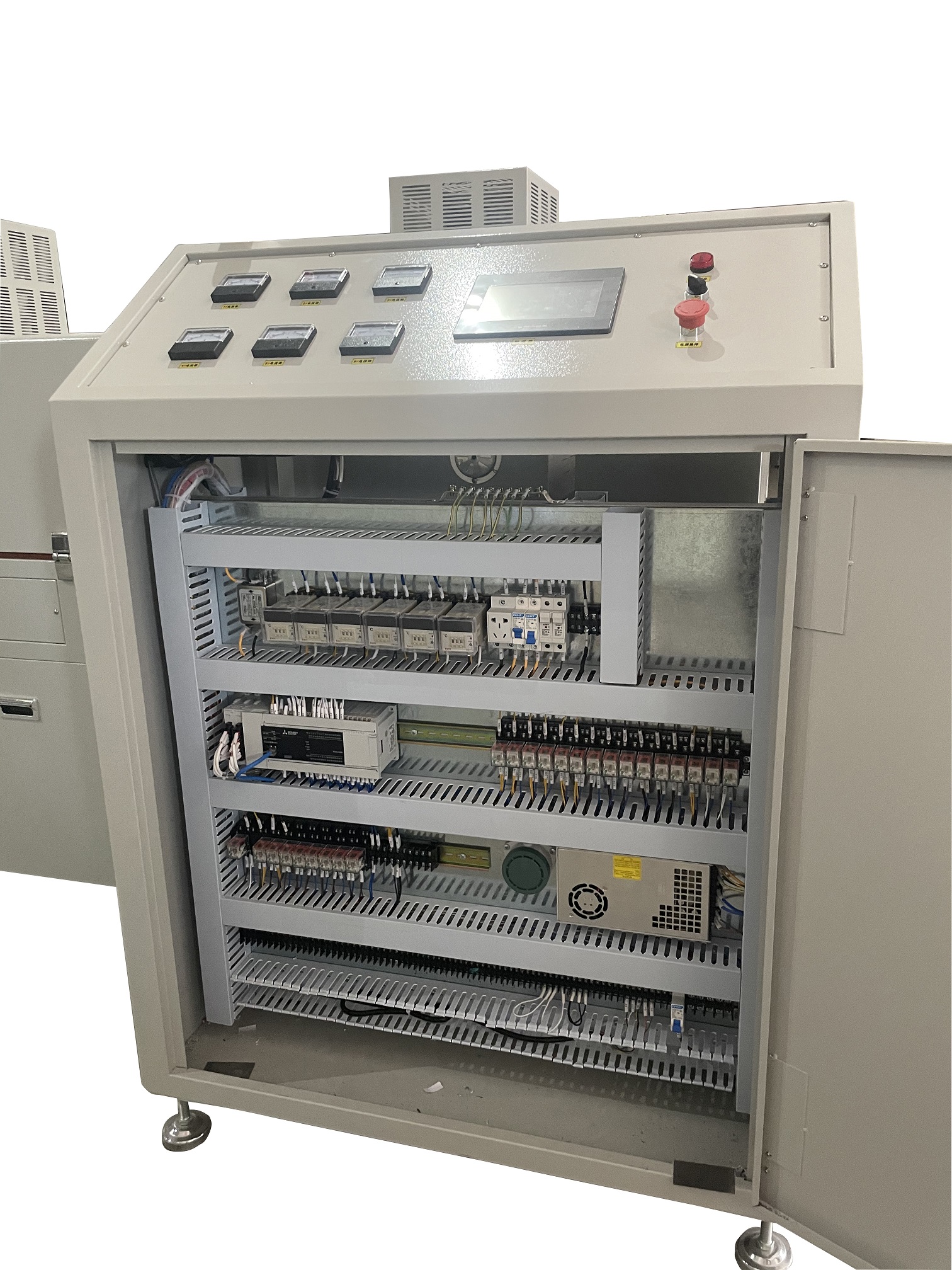 控制方式:采用(三菱)溫度模塊配合(樺特)SCR控制溫度,控溫精準(zhǔn),溫度偏差小;操作介面采用(威倫)7寸彩屏配合(三菱)PLC設(shè)定及