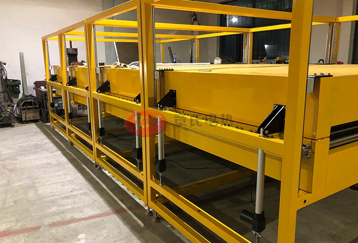 3、電器部分:電源三相  AC380V,120A,三相五線制,功率43KW,采用2P臺(tái)灣愛德利變頻器變頻調(diào)速,  配臺(tái)灣愛德力1.5KW調(diào)速電機(jī)一臺(tái),奧克力牌80型減速牙箱,速比為1:60,配傳動(dòng)齒輪和傳動(dòng)鏈條,傳動(dòng)速度0.5至6米/分鐘任意可調(diào),配獨(dú)立的控制系統(tǒng),每段爐腔配臺(tái)灣愛德力牌運(yùn)風(fēng)馬達(dá)二臺(tái),配八寸半運(yùn)風(fēng)風(fēng)輪,爐蓋雙內(nèi)層配有運(yùn)風(fēng)風(fēng)槽,發(fā)熱管內(nèi)置風(fēng)槽內(nèi),三面循環(huán)運(yùn)風(fēng),共計(jì):10臺(tái)運(yùn)風(fēng)馬達(dá),每臺(tái)0.37KW.使?fàn)t內(nèi)溫度更加均勻;每段爐腔內(nèi)裝有不銹鋼散熱片式發(fā)熱管12條,共計(jì)60條,每條600W均勻分布在配在爐腔內(nèi)部,傳輸帶底部配有隔熱層,厚度為80mm,使?fàn)t外溫度不燙手(溫度在50度以下),每段爐腔配獨(dú)立的控制電箱和溫控系統(tǒng).方便設(shè)置不同的溫度。